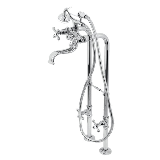 Distinguished for its elegance, sophistication, and exquisite architecture, this freestanding tub faucet is the perfect fixture for any traditional home. Allow it to both complement your freestanding tub and act as a beautiful ornamental piece in your bathroom. As the perfect accompaniment to your tub, the Kingston freestanding clawfoot tub faucet with water supply lines and valves will surely complete your refined bathroom decorum with the help of its premium, glistening polished brass finish and hand shower. The solid brass construction also makes for a heavy, quality made product. Includes hand shower with porcelain handle and 59-inch hose.