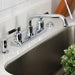 This faucet tastefully interweaves top-notch ergonomic design and the sheen of contemporary simplicity with its black silicone rubber coated handles and cylindrical facets. Easily adaptable to any style, centerset faucets are admired for their single unit and ease of installation. The polished chrome finish will also add a glistening elegance to your kitchen ensemble. A sturdy brass construction and swivel abilities make for a reliant and long lasting fixture. Matching accessories are available for use.