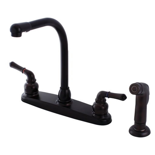 Kingston Tulare FB758SP - Americana Two-Handle 4-Hole 8" Centerset Kitchen Faucet with Side Sprayer, Brushed Nickel