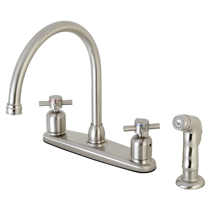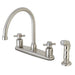 Kingston Tulare FB798DXSP - Concord Two-Handle 4-Hole 8" Centerset Kitchen Faucet with Side Sprayer, Brushed Nickel