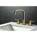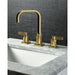The chic fashion of this faucet is distinguished by its expressive artistry and flat, ergonomic levers. Ideal for more spacious bathrooms, widespread faucets are more spread apart and feature a 3-hole installation. The NuvoFusion 8 in. widespread bathroom faucet with pop-up drain and its featured sturdy brass construction and premium polished brass finish are guaranteed to glamorize your home's modern ensemble for years to come. Revive the obsolete with the illustrious prestige of this fixture. A matching finish drain is also included.