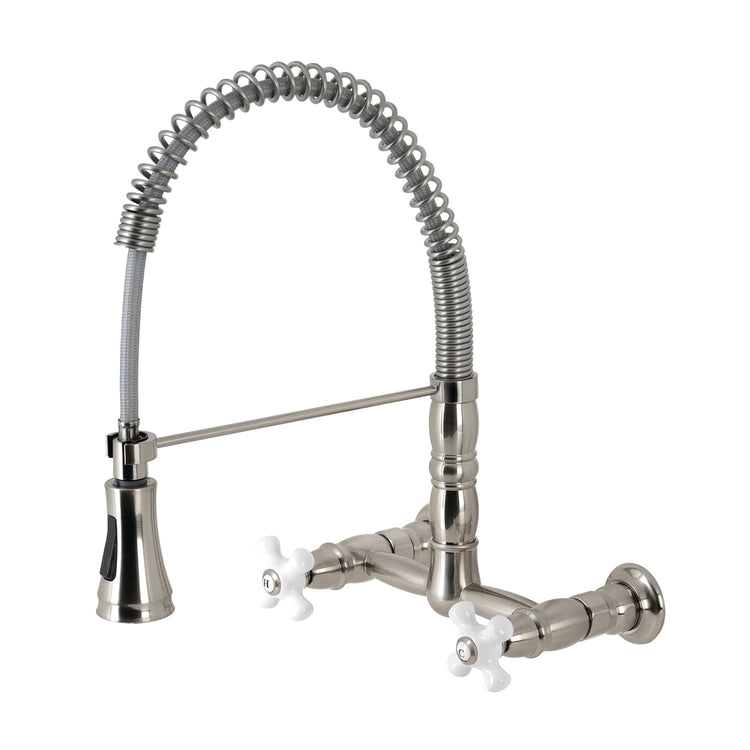 Kingston Tulare GS1248PX - Heritage Double-Handle 2-Hole Wall-Mount Pre-Rinse Bridge Kitchen Faucet, Brushed Nickel