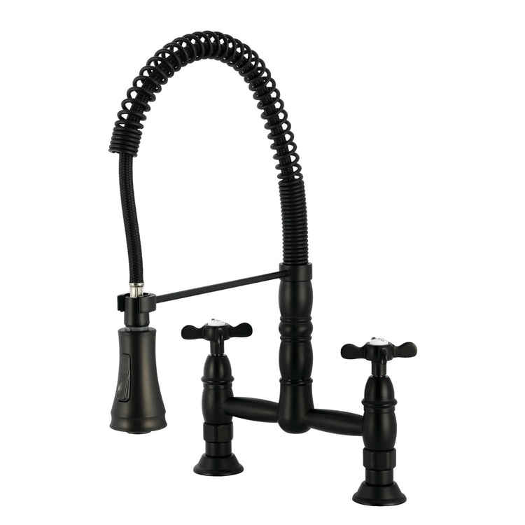 Essex GS1270BEX Double-Handle 2-Hole Deck-Mount Pre-Rinse Bridge Kitchen Faucet, Matte Black