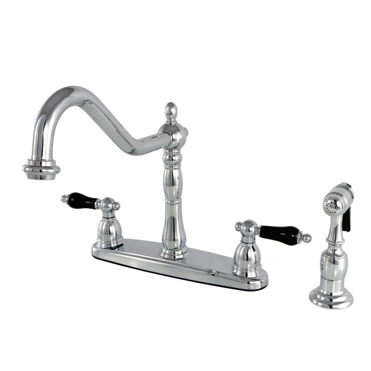 Kingston Heirloom KB1751PKLBS - Duchess Two-Handle 4-Hole 8" Centerset Kitchen Faucet with Brass Sprayer, Polished Chrome