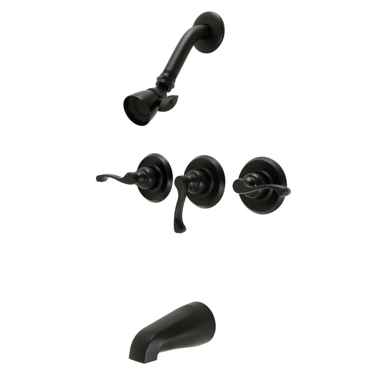 Kingston Tulare KB230FL - Royal Triple-Handle Tub and Shower Faucet, Matte Black