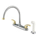 Kingston Tulare KB6794LL - Legacy Two-Handle 4-Hole 8" Centerset Kitchen Faucet with Side Sprayer, Polished Chrome/Polished Brass
