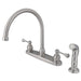 Kingston Tulare KB728BLSP - Vintage Two-Handle 4-Hole 8" Centerset Kitchen Faucet with Side Sprayer, Brushed Nickel