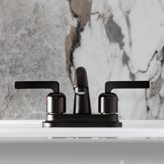 Kingston Tulare KB8615EFL - Centurion Double-Handle 3-Hole Deck Mount 4-Inch Centerset Bathroom Faucet with Pop-Up Drain, Oil Rubbed Bronze