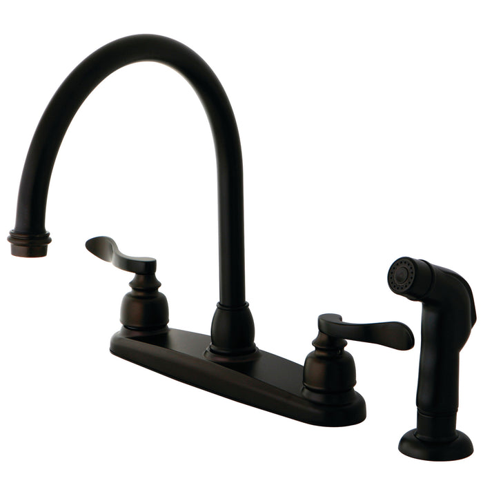 Kingston Tulare KB8795NFLSP - NuWave French Two-Handle 4-Hole 8" Centerset Kitchen Faucet with Side Sprayer, Oil Rubbed Bronze