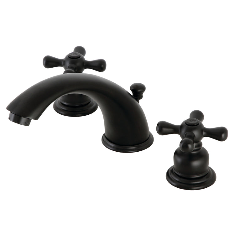 Kingston Heirloom KB960AX - Victorian Two-Handle 3-Hole Deck Mount Widespread Bathroom Faucet with Pop-Up Drain, Matte Black