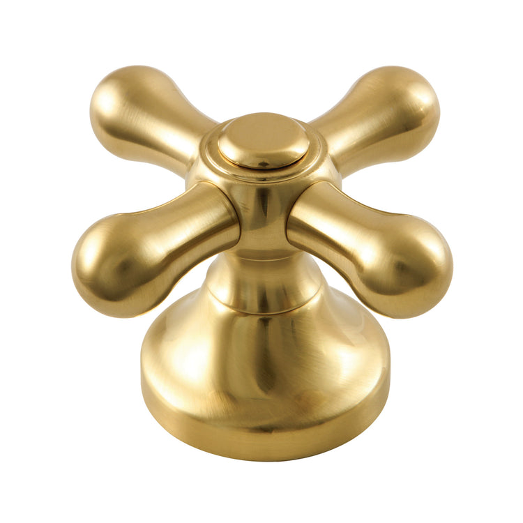 The Kingston Brass metal cross handle provides effortless mobility and style for easy adjustment of water temperature and volume. This will enhance a home with a traditional theme. Use as a replacement part to match with brushed brass fixtures.