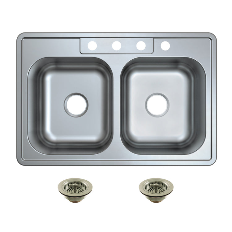 Kingston Tulare KGKTD332288 - Studio 33-Inch Stainless Steel Self-Rimming Double Bowl Drop-In Kitchen Sink (4-Hole) with Strainer, Stainless Steel/Brushed Nickel