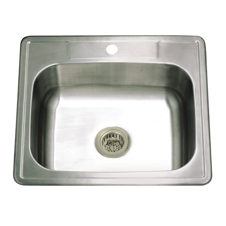 Kingston Tulare KGKTS2522818 - Studio 25-Inch Stainless Steel Self-Rimming Single Bowl Drop-In Kitchen Sink (1-Hole) with Strainer, Stainless Steel/Brushed Nickel