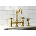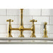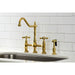 Kingston Heirloom KS1277AXBS - Heritage Two-Handle 4-Hole Deck Mount Bridge Kitchen Faucet with Brass Sprayer, Brushed Brass