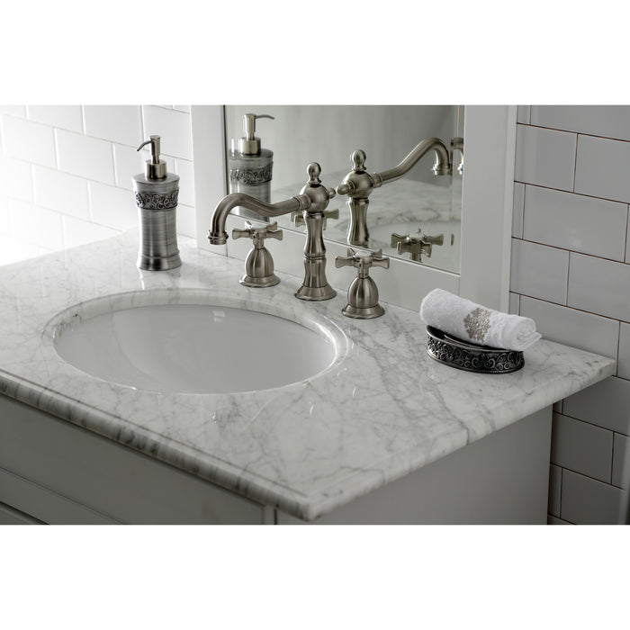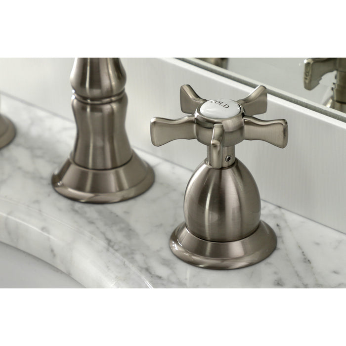 Kingston Heirloom KS1978NX - Hamilton Two-Handle 3-Hole Deck Mount Widespread Bathroom Faucet with Brass Pop-Up, Brushed Nickel