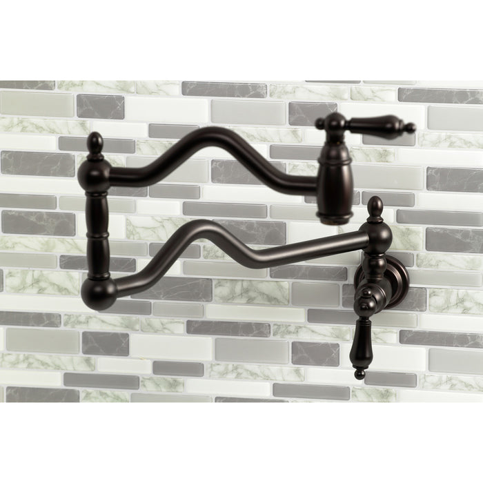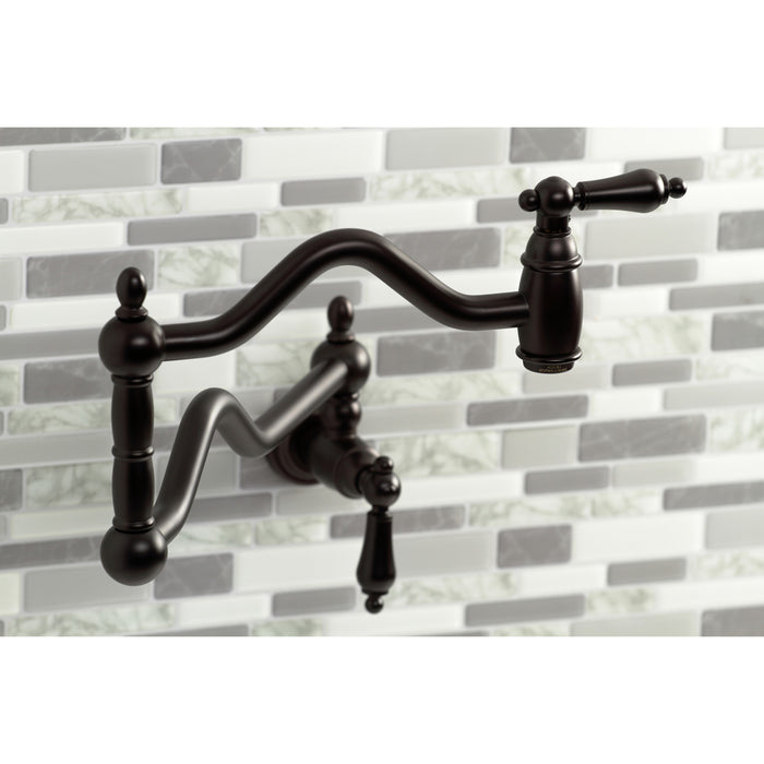Kingston Heirloom KS2105AL - Heritage Two-Handle 1-Hole Wall Mount Pot Filler Faucet, Oil Rubbed Bronze