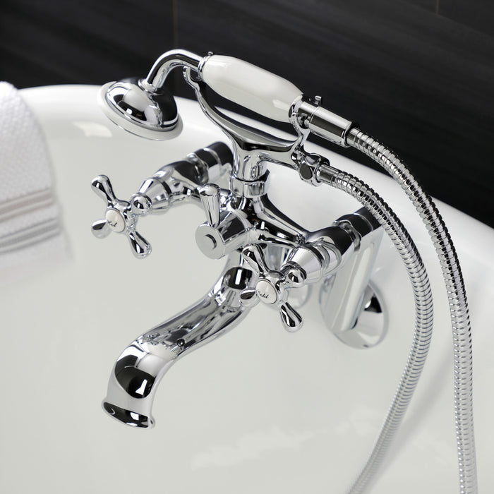 Kingston Heirloom KS229C - Kingston Three-Handle 2-Hole Tub Wall Mount Clawfoot Tub Faucet with Handshower, Polished Chrome