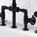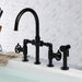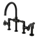 Kingston Sona KS2330RKX - Webb Two-Handle 4-Hole Deck Mount Knurled Handle Bridge Kitchen Faucet with Brass Sprayer, Matte Black