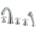 Kingston Tulare KS23615PX - Milano Three-Handle 5-Hole Deck Mount Roman Tub Faucet with Hand Shower, Polished Chrome