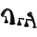 Kingston Tulare KS23655FLThree-Handle 5-Hole Deck Mount Roman Tub Faucet with Hand Shower, Oil Rubbed Bronze