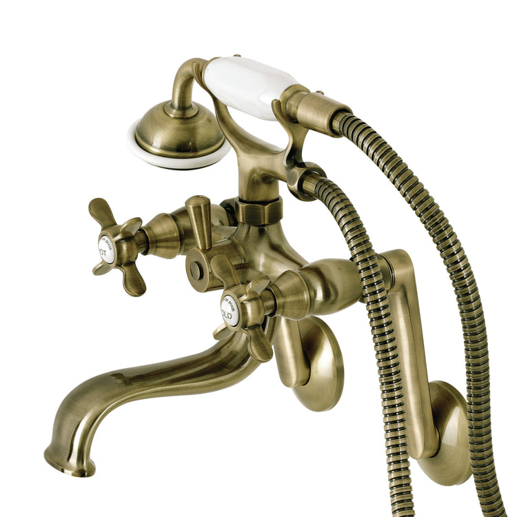 Kingston Heirloom KS249AB - Kingston Three-Handle 2-Hole Tub Wall Mount Clawfoot Tub Faucet with Hand Shower, Antique Brass