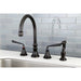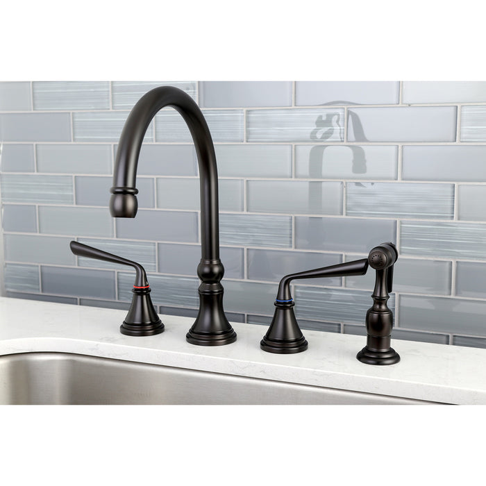 Kingston Tulare KS2795ZLBS - Silver Sage Double-Handle 4-Hole Widespread Kitchen Faucet with Brass Sprayer, Oil Rubbed Bronze