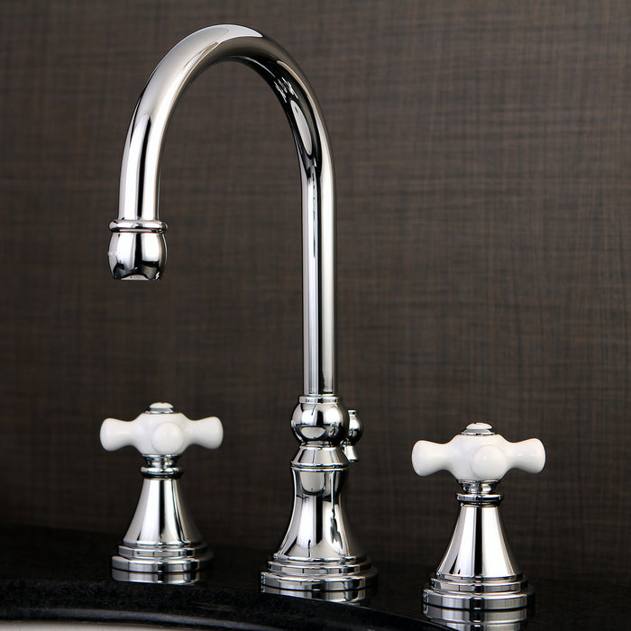 Kingston Tulare KS2981PX - Governor Two-Handle 3-Hole Deck Mount Widespread Bathroom Faucet with Brass Pop-Up, Polished Chrome