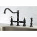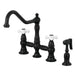 Kingston Heirloom KS3270PXBS-Restoration Two-Handle 4-Hole Deck Mount Bridge Kitchen Faucet with Brass Sprayer, Matte Black