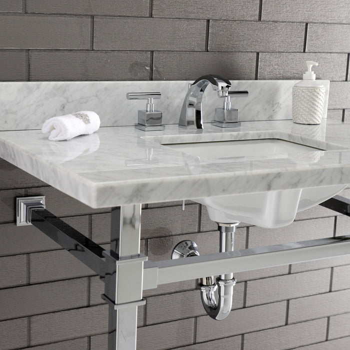 Draw eyes and attract admiration amongst guests with the contouring and rectangular configurations of this faucet. Ideal for more spacious bathrooms, widespread faucets are more spread apart and feature a 3-hole installation. The Claremont 8" Widespread Bathroom Faucet, with its featured sturdy brass construction and premium polished chrome finish, are guaranteed to glamorize your home's modern ensemble for years to come. Elevate your contemporary aesthetic through this faucets design. A matching finish drain is also included.