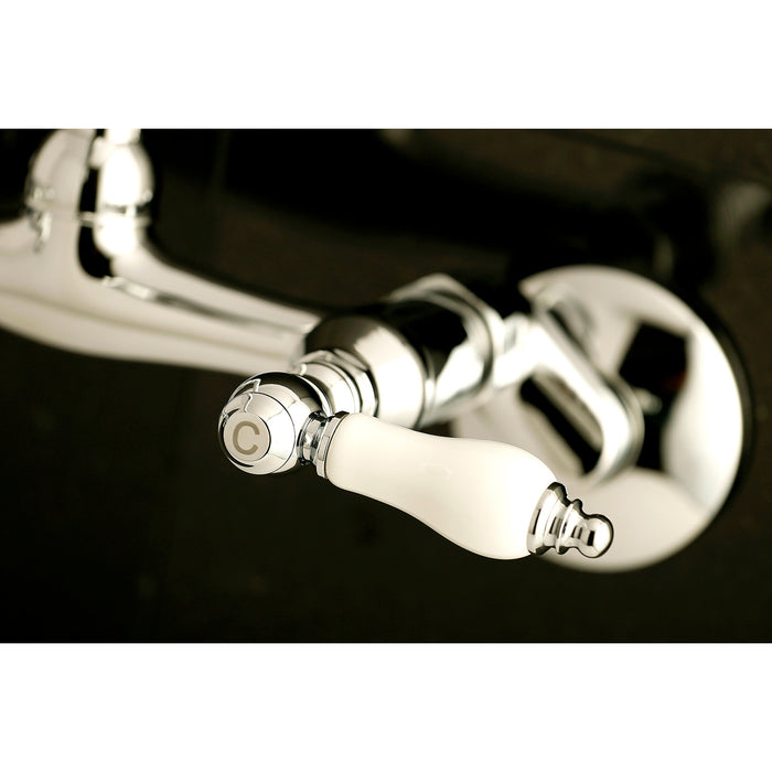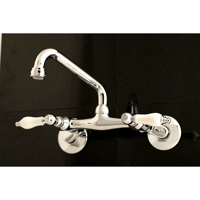 Kingston Heirloom KS513C - Kingston Two-Handle 2-Hole Wall Mount Bridge Kitchen Faucet, Polished Chrome