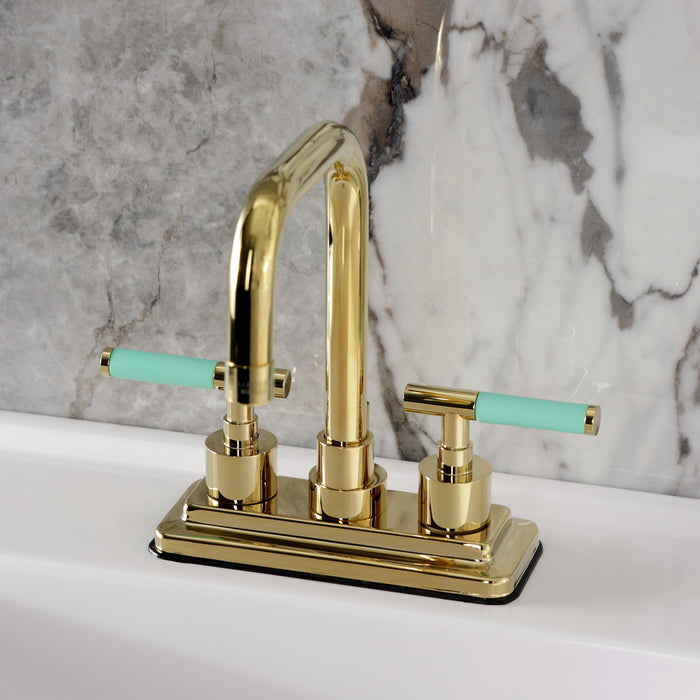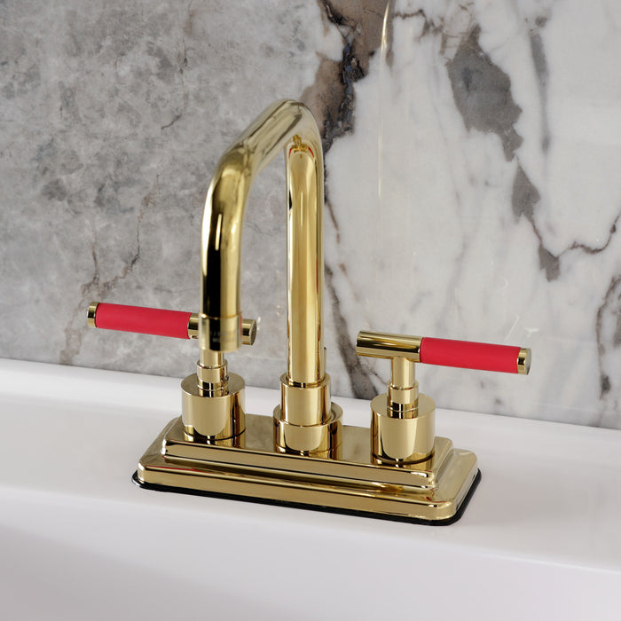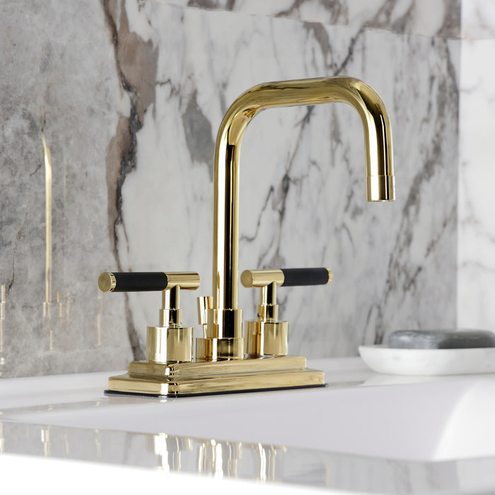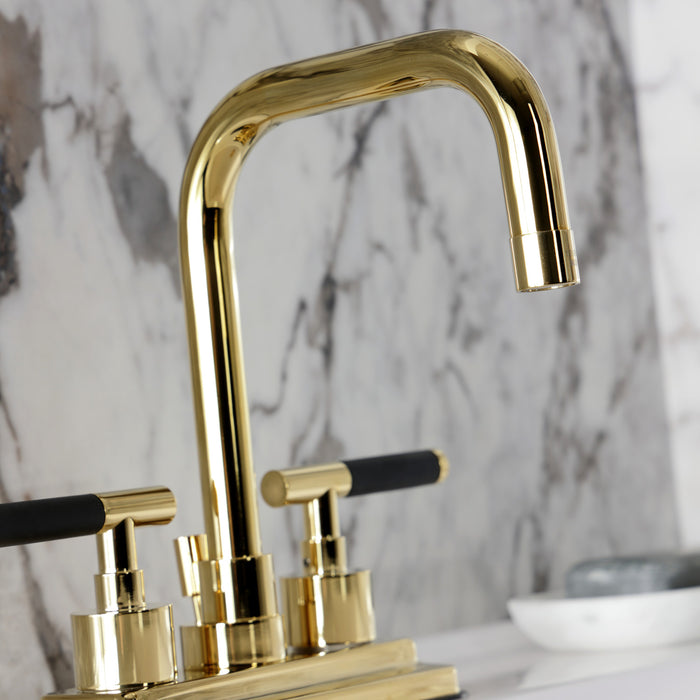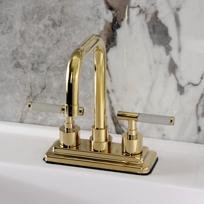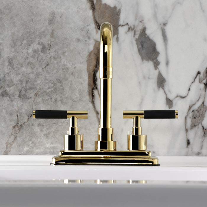 Kingston Sona KS6642CKL - Kaiser Double-Handle 3-Hole Deck Mount 4-Inch Centerset Bathroom Faucet with Brass Pop-Up, Polished Brass