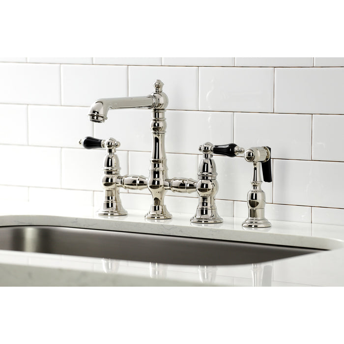 Kingston Tulare KS7276PKLBS - Duchess Two-Handle 4-Hole Deck Mount Bridge Kitchen Faucet with Brass Sprayer, Polished Nickel