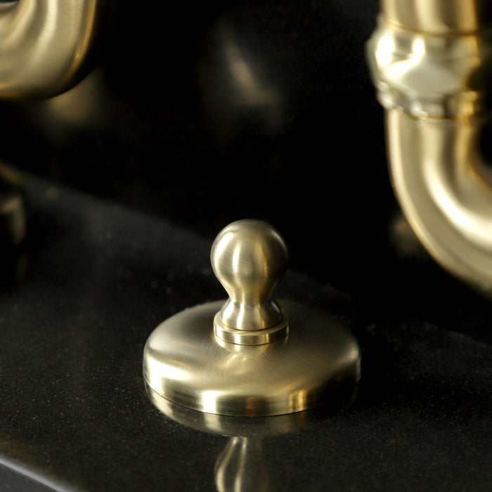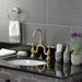 Kingston Heirloom KS7997TAL - Tudor Two-Handle 3-Hole Deck Mount Bridge Bathroom Faucet with Brass Pop-Up, Brushed Brass