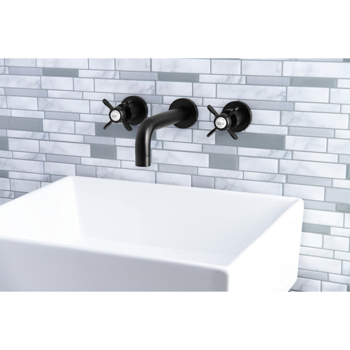 Kingston Sona KS8120BEX - Essex Double-Handle 3-Hole Wall Mount Bathroom Faucet, Matte Black