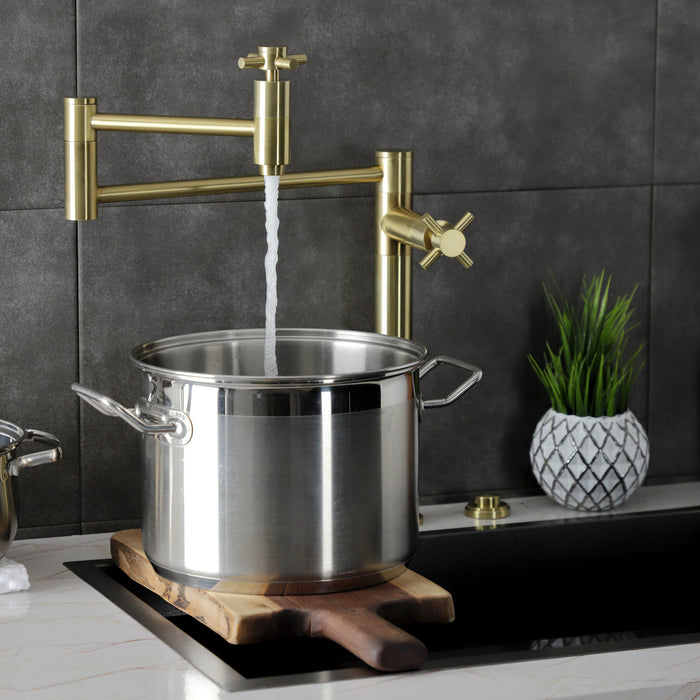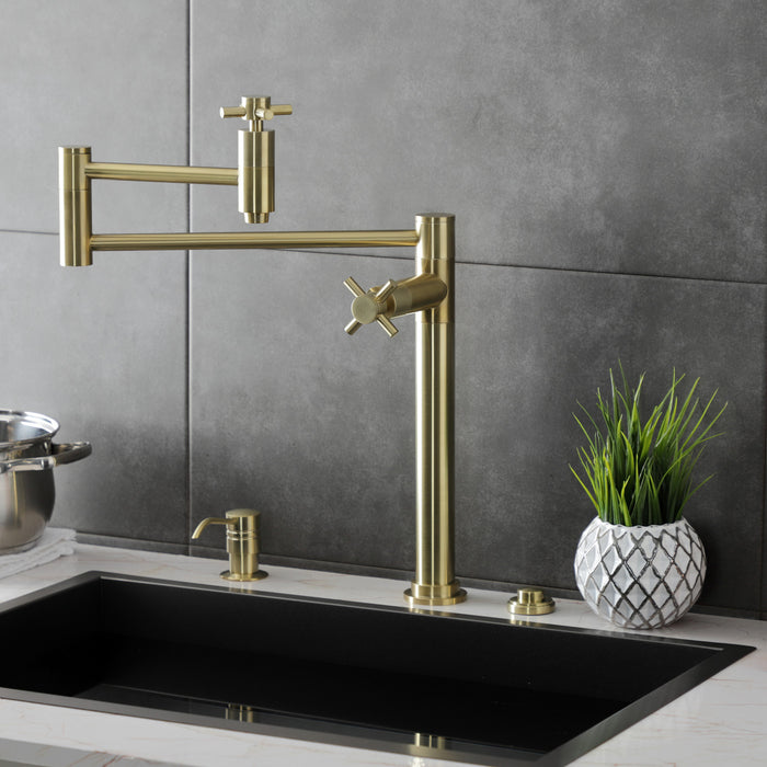 Kingston Sona KS8707DX - Concord Two-Handle 1-Hole Deck Mount Pot Filler Faucet, Brushed Brass