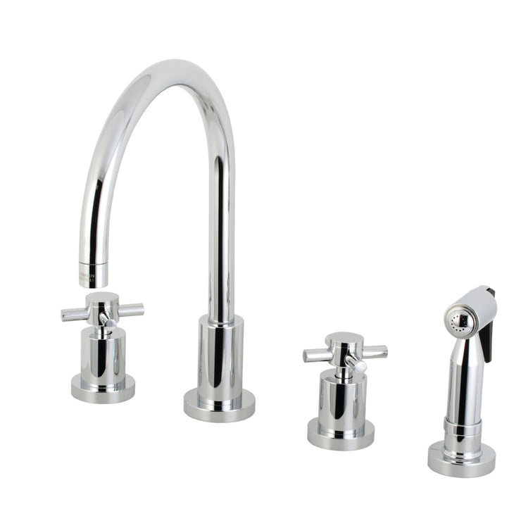 Kingston Sona KS8721DXBS - Concord Double-Handle 4-Hole Widespread Kitchen Faucet with Brass Sprayer, Polished Chrome