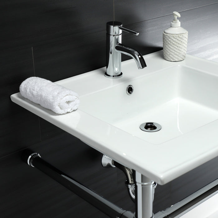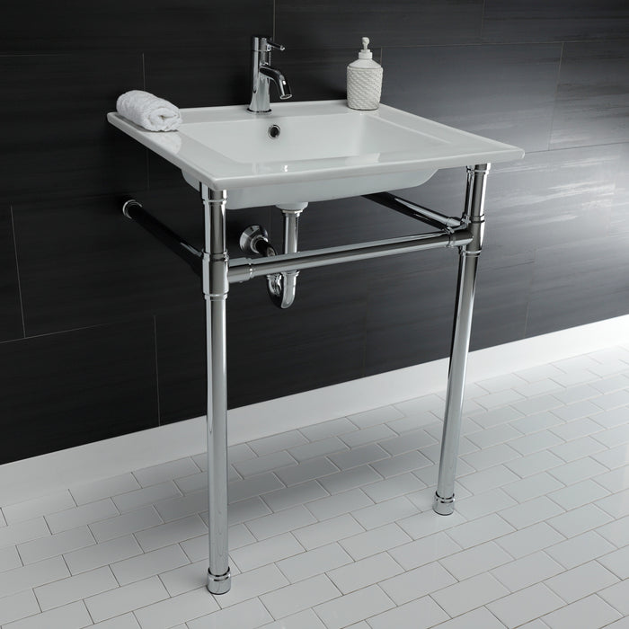 Kingston Tulare KVPB2522711 - Dreyfuss 25-Inch Ceramic Console Sink with Stainless Steel Legs (1-Hole), White/Polished Chrome