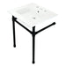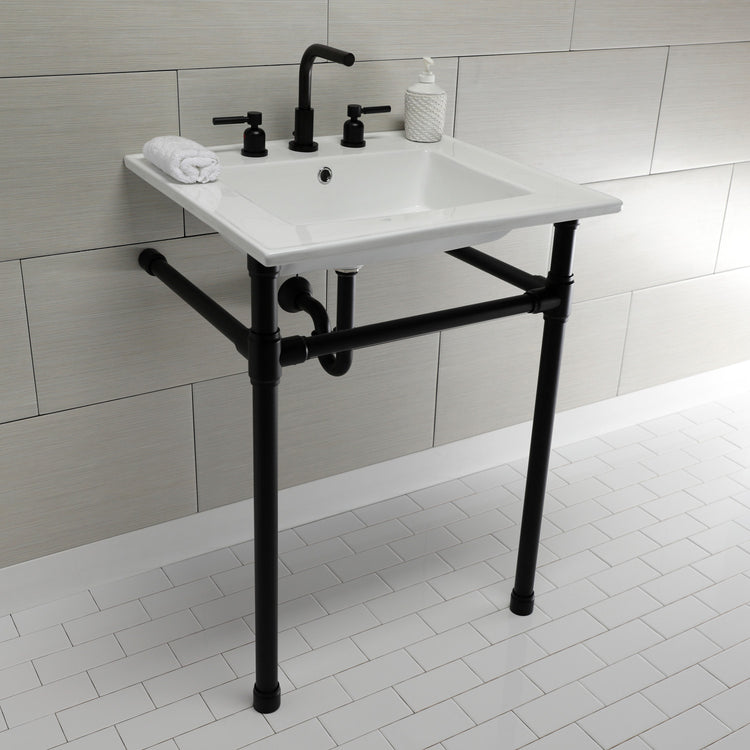 Kingston Tulare KVPB25227W80 - Dreyfuss 25-Inch Ceramic Console Sink with Stainless Steel Legs (8-Inch, 3-Hole), White/Matte Black