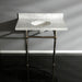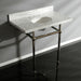 With a beautiful Carrara Marble counter top, this console sink set is a long lasting, durable, and elegant addition to your bathroom. A fabulous alternative where space is limited or tight, making them friendly for the whole family. With different shades and natural designs, otherwise known as veining, no two sinks will be alike. Also for your convenience, anti-slip rubber pads are included with the brass legs to ensure steadiness. Water supply kit, drain assembly, and the faucet are sold separately. Kingston's Carrara Marble tops are polished, but they are not sealed. Polished marble has a shiny surface and resists stains. Natural stone, even when polished, is still somewhat porous and does remain susceptible to etching by acidic compounds like fruit juice, vinegar, some cleaning solvents, etc. For customers that wish to further protect their investment the marble can be sealed. The following is intended solely for informational purposes. Kingston does not warranty nor accept liability for damages or other negative outcomes resulting from any treatment or coating applied to the countertop after purchase, whether applied by the customer or by a third party. For anyone unfamiliar with this nature of project, Kingston recommends consulting an experienced professional in your area. When looking for a sealant product, please be sure to seek a product specifically designed for use on polished marble, granite or other natural stone surfaces. Be sure to always avoid anything containing a citrus ingredient, acid ingredient, tung oil, linseed oil, or other natural oils. These can damage or discolor your marble.