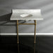 With a beautiful Carrara Marble counter top, this console sink set is a long lasting, durable, and elegant addition to your bathroom. A fabulous alternative where space is limited or tight, making them friendly for the whole family. With different shades and natural designs, otherwise known as veining, no two sinks will be alike. Also for your convenience, anti-slip rubber pads are included with the brass legs to ensure steadiness. Water supply kit, drain assembly, and the faucet are sold separately. Kingston's Carrara Marble tops are polished, but they are not sealed. Polished marble has a shiny surface and resists stains. Natural stone, even when polished, is still somewhat porous and does remain susceptible to etching by acidic compounds like fruit juice, vinegar, some cleaning solvents, etc. For customers that wish to further protect their investment the marble can be sealed. The following is intended solely for informational purposes. Kingston does not warranty nor accept liability for damages or other negative outcomes resulting from any treatment or coating applied to the countertop after purchase, whether applied by the customer or by a third party. For anyone unfamiliar with this nature of project, Kingston recommends consulting an experienced professional in your area. When looking for a sealant product, please be sure to seek a product specifically designed for use on polished marble, granite or other natural stone surfaces. Be sure to always avoid anything containing a citrus ingredient, acid ingredient, tung oil, linseed oil, or other natural oils. These can damage or discolor your marble.