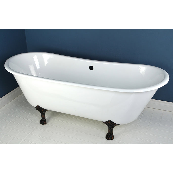 Kingston Heirloom VCTND6728NH5 - Aqua Eden 67-Inch Cast Iron Oval Double Slipper Clawfoot Tub (No Faucet Drillings), White/Oil Rubbed Bronze