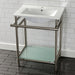 Kingston Sona VPB24187W18 - Sheridan 24-Inch Ceramic Console Sink with Stainless Steel Legs and Glass Shelf (1-Hole), White/Brushed Nickel