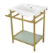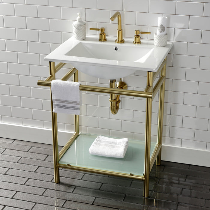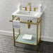 Kingston Sona VPB24187W87 - Sheridan 24-Inch Ceramic Console Sink with Stainless Steel Legs and Glass Shelf (8-Inch, 3-Hole), White/Brushed Brass