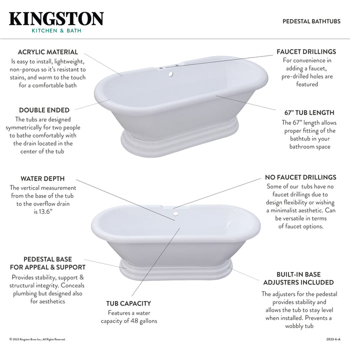 Kingston Heirloom VT7PE672824PBA - Aqua Eden 67-Inch Acrylic Oval Double Ended Pedestal Tub (7-Inch Faucet Drillings), Glossy White