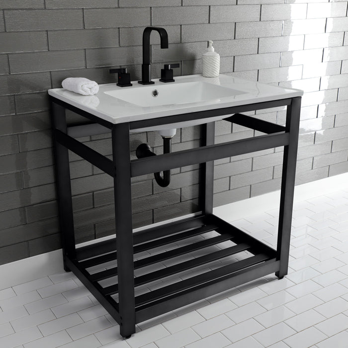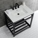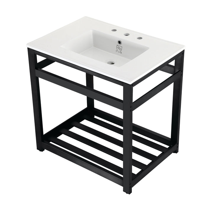 Kingston Sona VWP3122W8A0 - Quadras 31-Inch Ceramic Console Sink with Steel Base and Shelf (8-Inch, 3-Hole), White/Matte Black