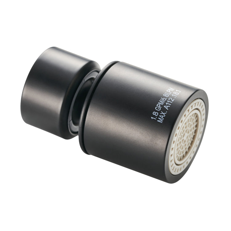 Installed at the ends of household faucets, aerators are designed with mesh screens to reduce splashing and dripping in sinks. A mixture of water and air is delivered while also helping to conserve water. Its dual-function with different water flow patterns: standard stream and spray makes you more convernient to wash by rotating the aerator. 360-degree swivel design reachs large range of the sink. This aerator's thread size: US Female 55/64"-27 UNS connection. The max water flow rate is 1.8 gallons per minute (GPM).