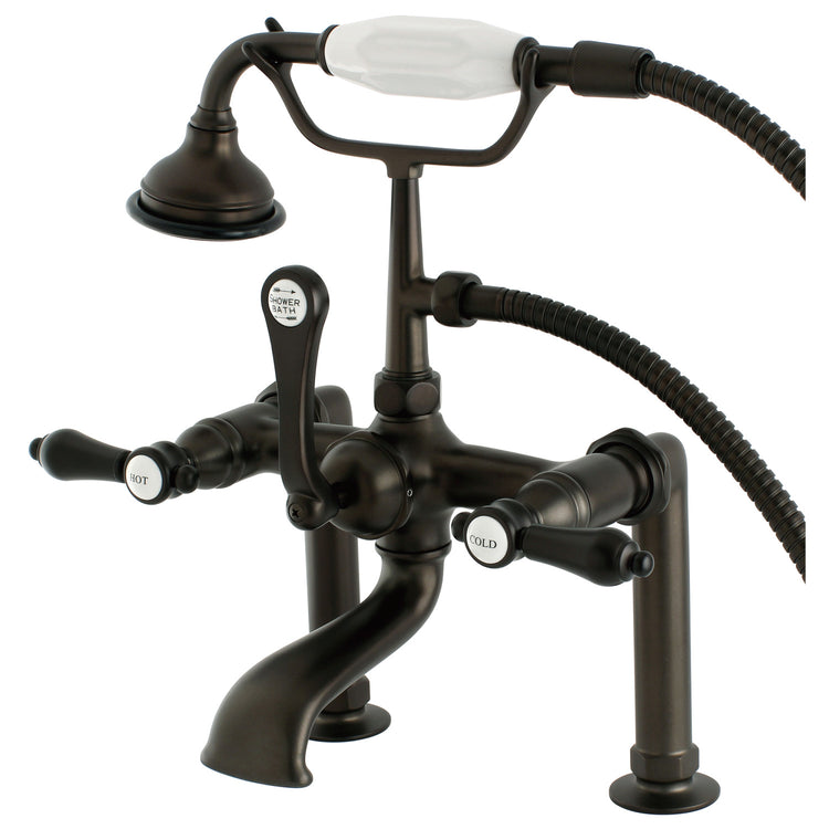Kingston Heirloom AE103T5BAL - Heirloom Three-Handle 2-Hole Deck-Mount Clawfoot Tub Faucet with Hand Shower, Oil Rubbed Bronze