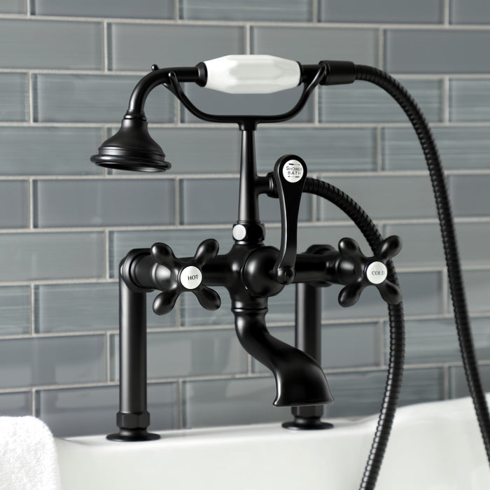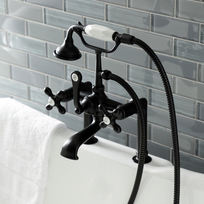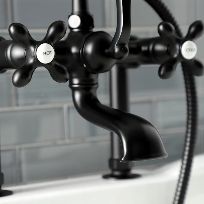 Kingston Heirloom AE109T0 - Aqua Vintage Three-Handle 2-Hole Deck-Mount Clawfoot Tub Faucet with Hand Shower, Matte Black