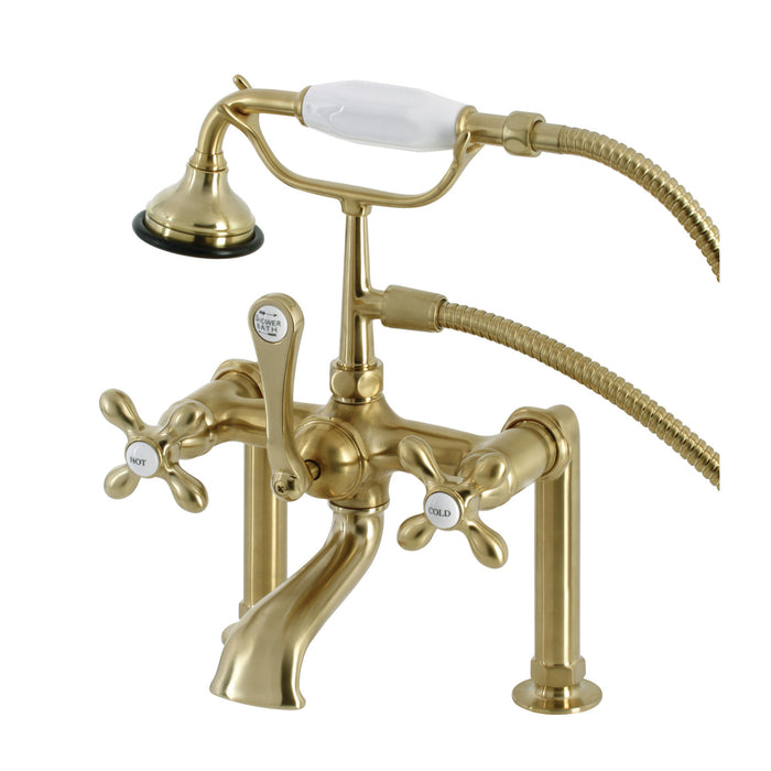 Kingston Heirloom AE109T7 - Aqua Vintage Three-Handle 2-Hole Deck-Mount Clawfoot Tub Faucet with Hand Shower, Brushed Brass