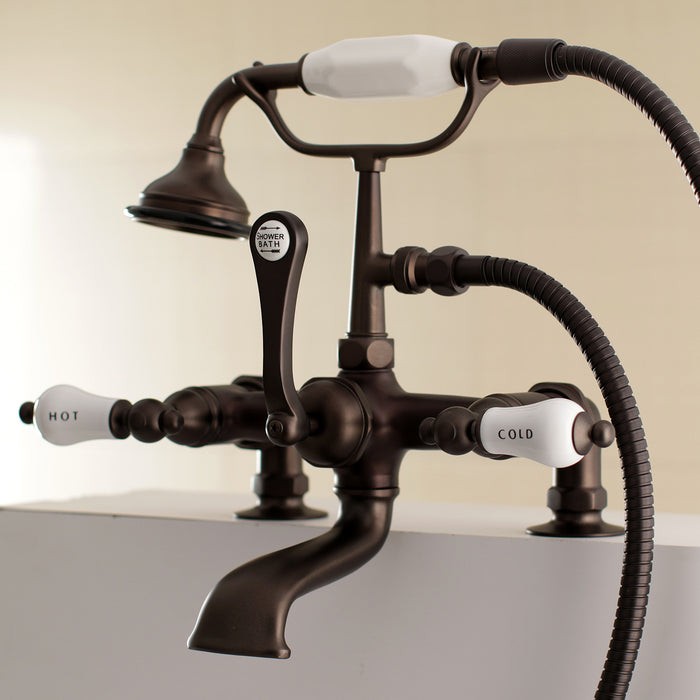 Aqua Vintage AE207T5 Three-Handle 2-Hole Deck-Mount Clawfoot Tub Faucet with Hand Shower, Oil Rubbed Bronze